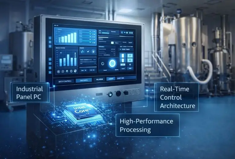 Our HMI and IPC platforms are sourced from leading industrial computing manufacturers and configured specifically for GMP pharmaceutical environments: IP65-rated enclosures for cleanroom wash-down compatibility, capacitive multi-touch screens operable in gloved operation, fanless cooling to eliminate contamination risk from internal airflow, and stainless steel mounting hardware compatible with pharmaceutical surface finish requirements.