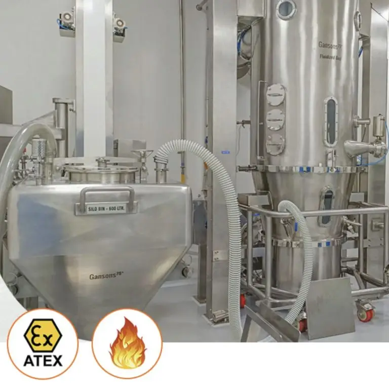 - ATEX / IECEx: Hazardous area automation configurations for solvent-based processes and flammable dust environments