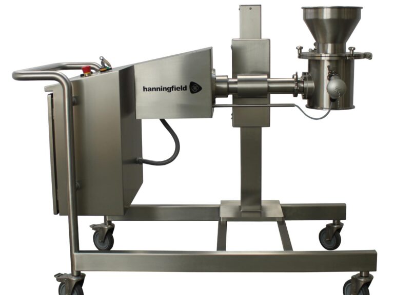 The Hanningfield Underdriven Uni-Mill® series features a bottom-driven impeller rotating inside a screen. The design incorporates an optimal, spacer-less gap to prevent metal-to-metal contact. This makes tooling changes quicker and easier, guaranteeing the closest possible gap each time. The machine offers in-line inlet and outlet options, providing higher throughput, a more compact design, and improved sanitary construction.