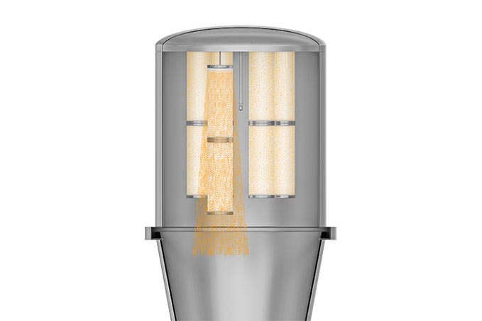 - The Cyklon® Swirl-Flow® distributor is available for applications where maximum drying efficiency is required, introducing air in a cyclonic horizontal pattern that reduces drying time by up to 70%.