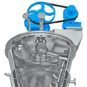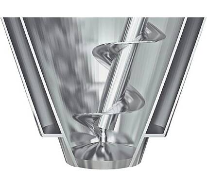 - The Nauta® mixing screw rotates on its own axis while simultaneously orbiting 360 degrees along the wall of the conical vessel.