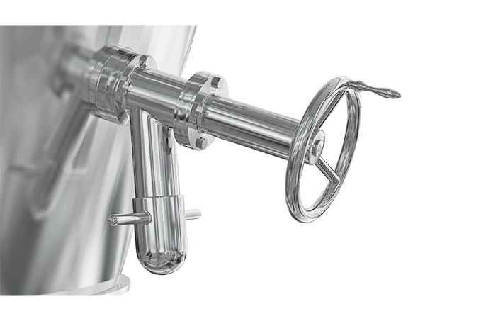 - A WIP system with 360-degree rotating spray balls allows thorough in-place cleaning driven by recipe.